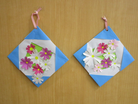 出来上がると、「可愛いのが出来て嬉しい。」「花を折って切るのがちょっと難しかった。」