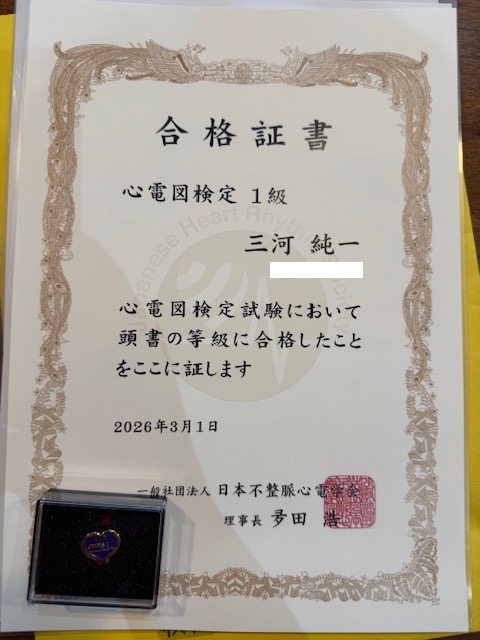 これで看板を下ろさずに済みました。この心電図検定、「成績優秀者」やさらに上位の「マイスター」なる称号もあるようですので、また機会があれば受験してみようと思います。